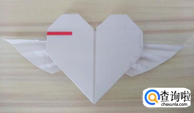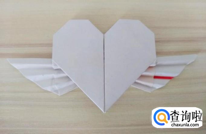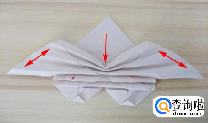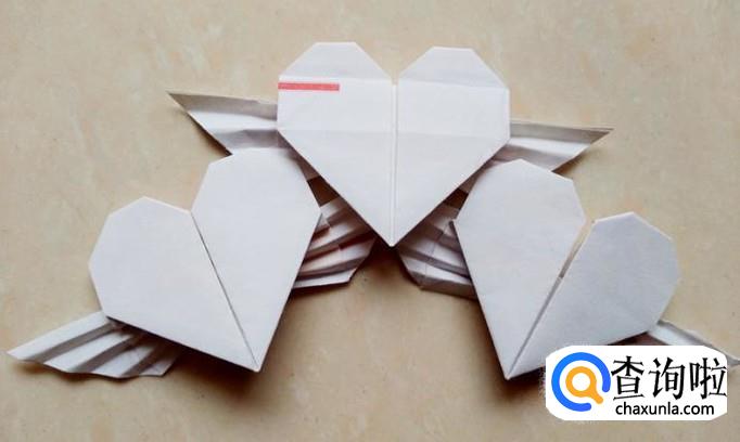 然后翅膀中间压在一起,翅膀两头撑开,这样翅膀就折好了,翻过正面就是成品了;
