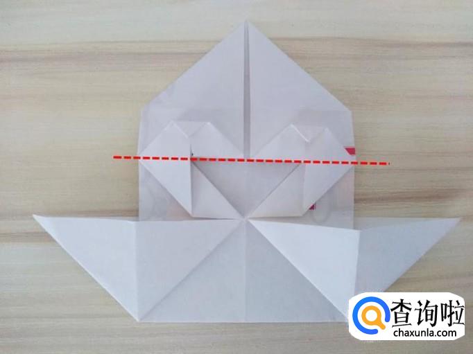 整体沿着虚线向反面对折,刚折好的心形上面的部分要折起来;