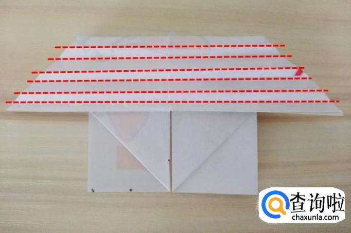 然后开始折翅膀,沿着虚线来回折,就像折扇一样,折子越小,翅膀越好看;