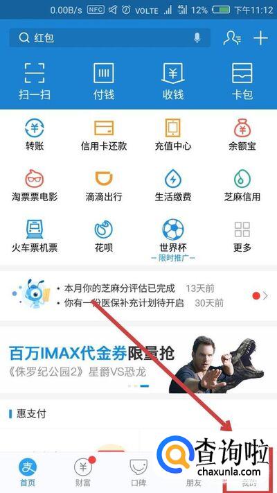 打开支付宝,在界面右下角找到【我的】,如图所示。
