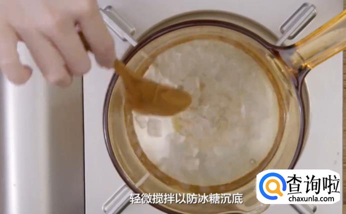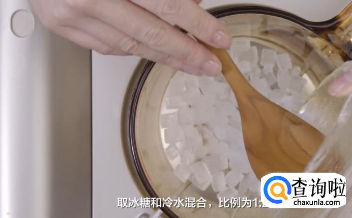 首先需要煮糖水,取冰糖和冷水混合,比例为1:2,然后轻轻地搅拌以防冰糖沉底。