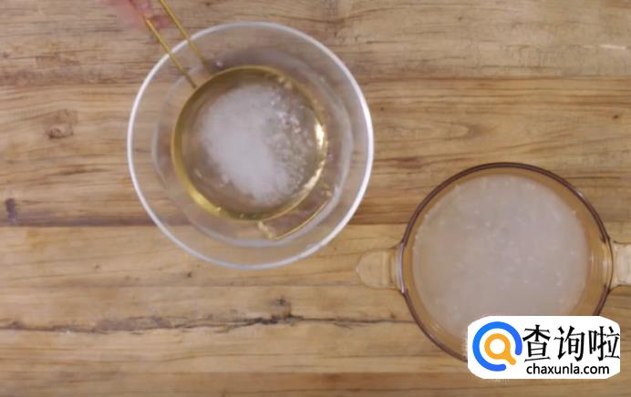 接着,开到中火,煮至糖完全融化,然后将糖水倒出来放凉待用。