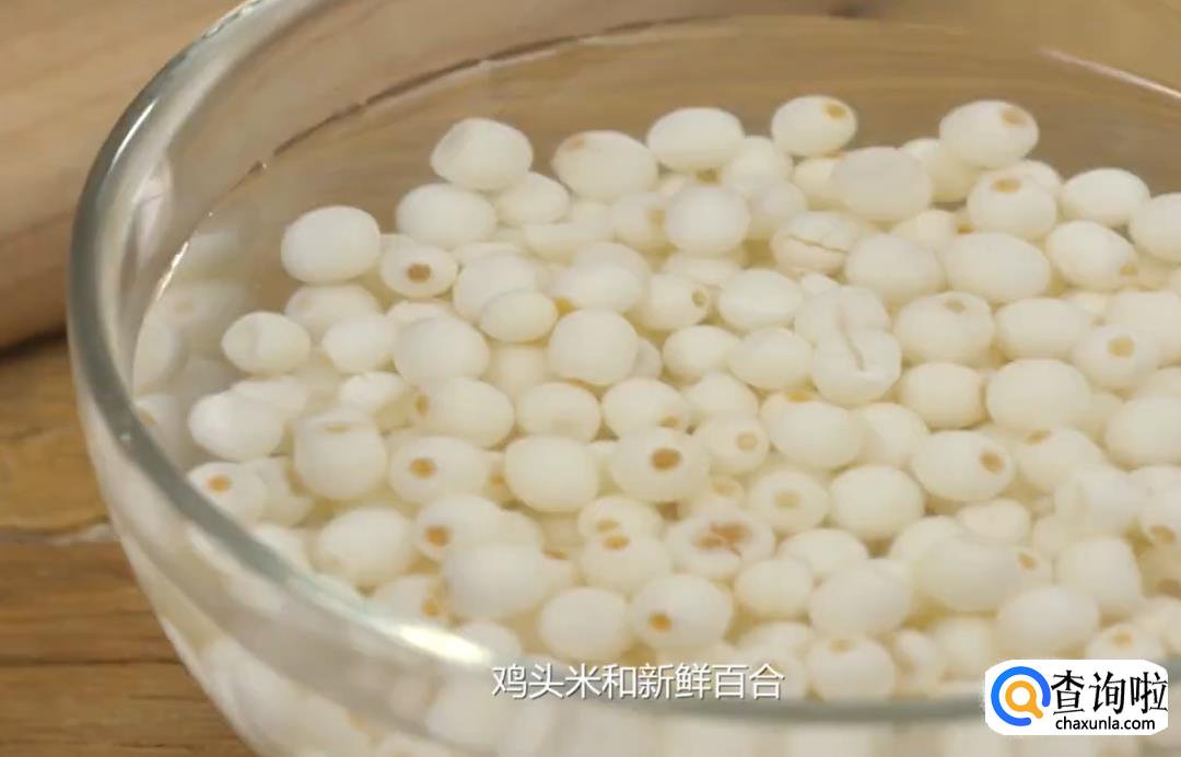 鸡头米和新鲜百合,加冰糖煮成糖水。