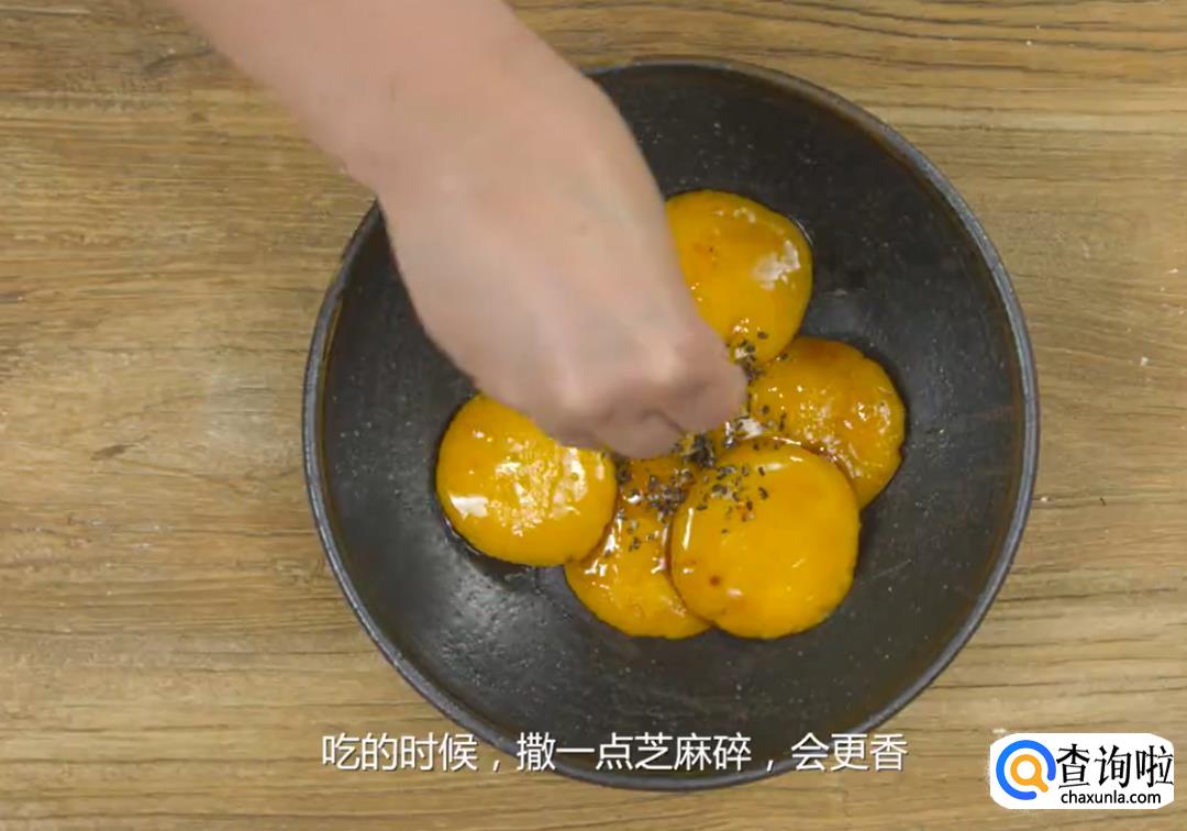 锅里加适量的红糖和水,中火煮沸融化后,加入南瓜饼煮七八分钟,撒上一些黑芝麻即可。