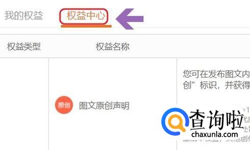 然后在右侧对应的页面里点击“权益中心”,这样就可看到自己目前是否具有开通原创的资格了,不过这里有个技巧,那就是已经开通头条号或者微信公众号的小伙伴会获取到邀请开通的权限,所以好好经营那两个自媒体有助于大鱼号收益的开通;