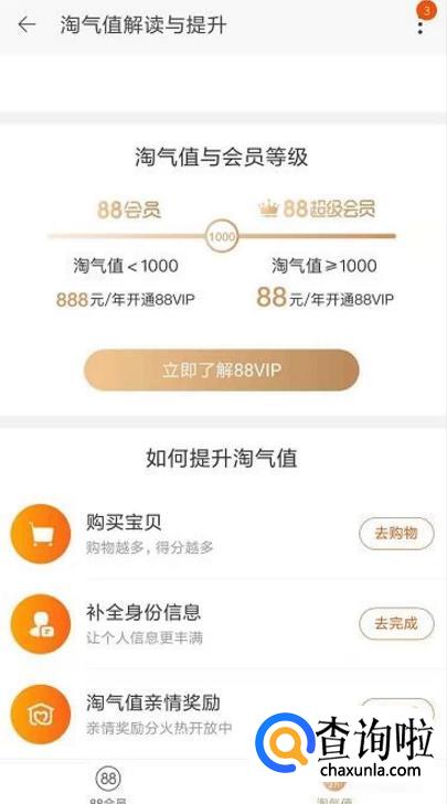淘宝的淘气值大于400时就是88会员了,我们可以在会员权益里兑换会员卡,电影代金券等等。