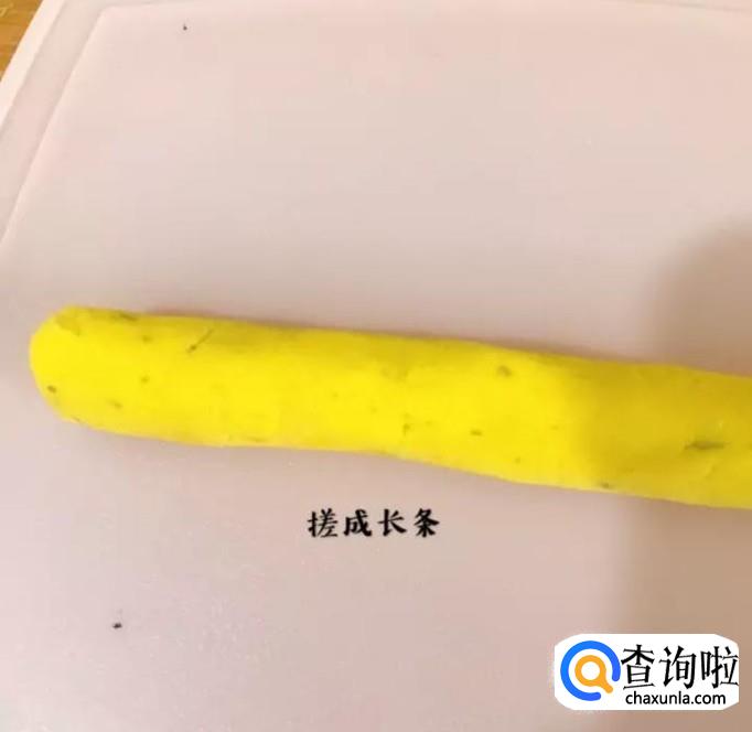 接着把食材搓成长条,如下图所示。