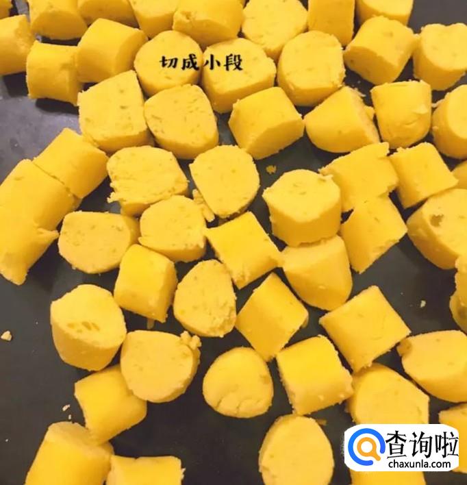 然后把长条切成小段,如下图所示。小贴士:切的越短越好,具体长度大家可以根据自己的喜好来决定。