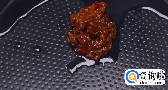 另起油锅,加一点点油,炒香豆瓣酱。