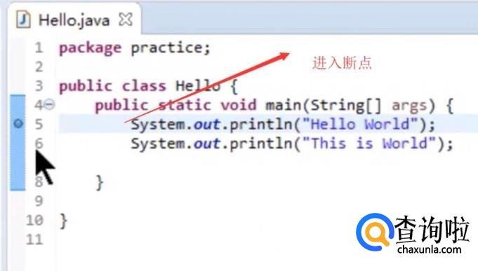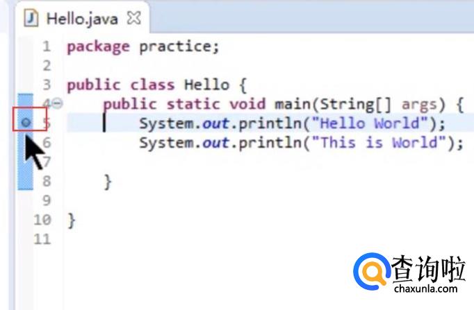接下来我们新建一个程序,然后在程序的一行前面添加一个断点,如下图所示