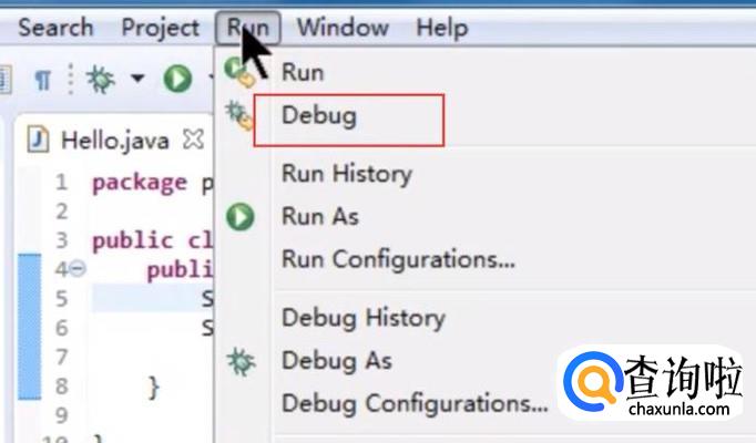 然后点击顶部的Run菜单,接着选择Debug选项,如下图所示
