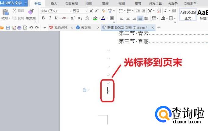 如图所示,把光标移到第一页的末尾。