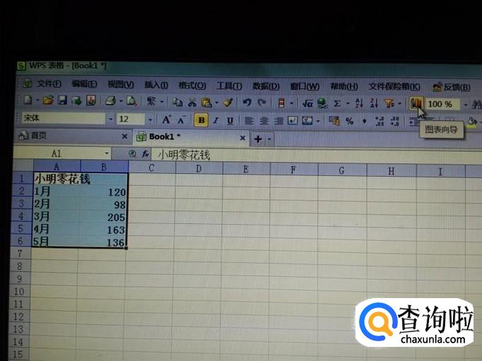 用鼠标将输入好的所有单元格选定,然后在上方菜单栏找到图标向导的按钮,点击它。