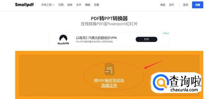 浏览器登录smallpdf的官方网址,找到PDF转PPT,如下图