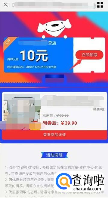 然后我们会进入到商品的详情,点击右下角的立即领劵。
