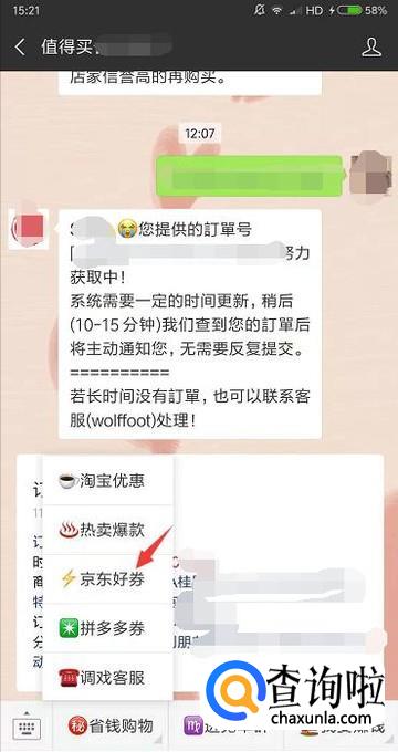 首先我们先在微信里关注“值得买”公众号,在公众号里进入到京东优惠券的页面。