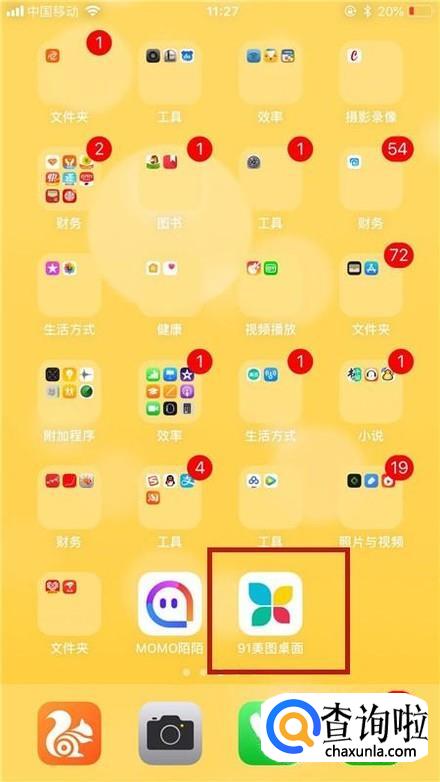 首先在我们的手机桌面上找到91美图桌面并长按它,如下图所示。