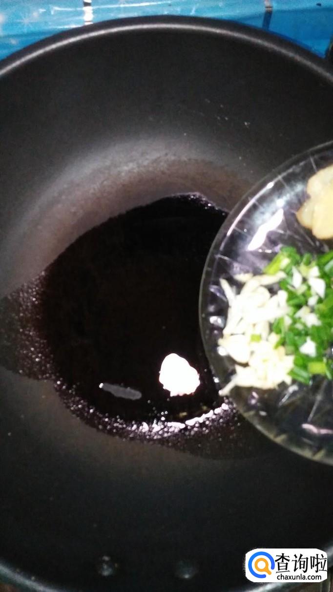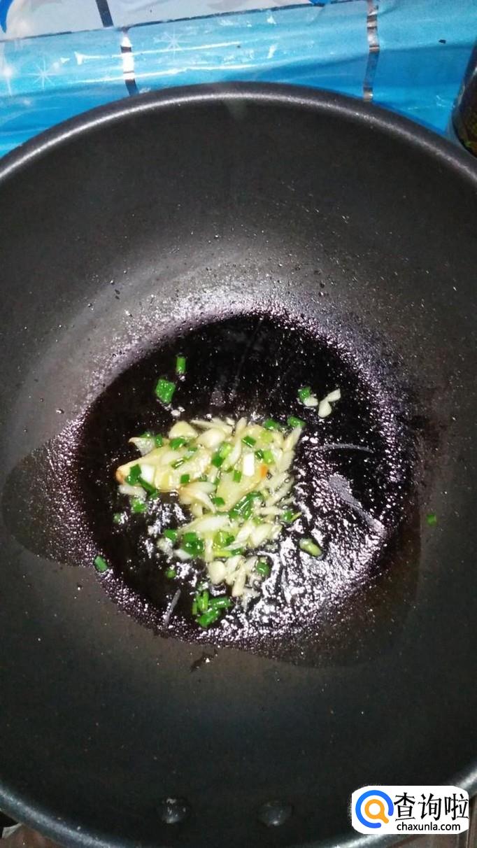 将葱,姜,蒜切碎,炒锅中放入适量油,然后小葱碎,姜末,蒜末放入锅中炒香。