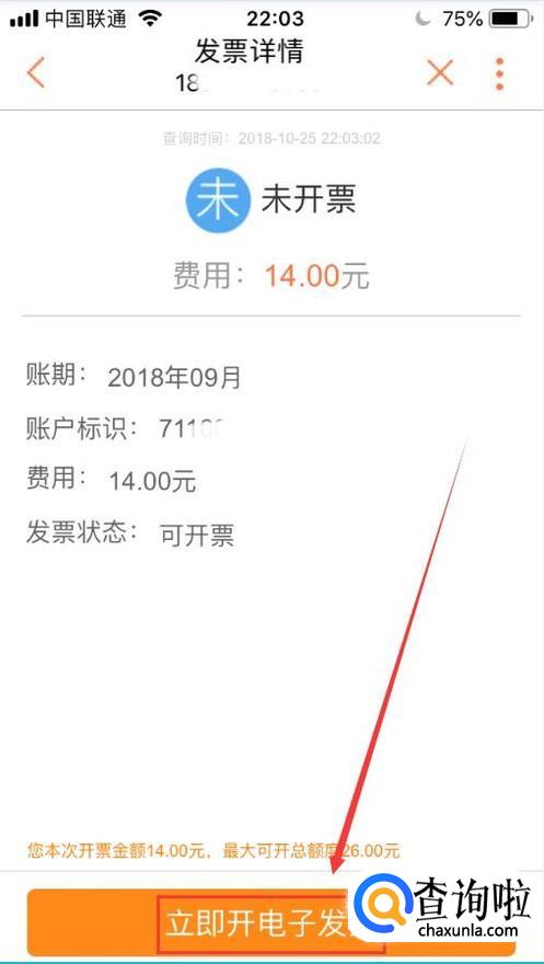 在“电子发票”界面我们能选择“月结发票”、“实缴发票”或“一卡充”,如图,这里选择的是“月结发票”,点击进入未开票的月结发票。