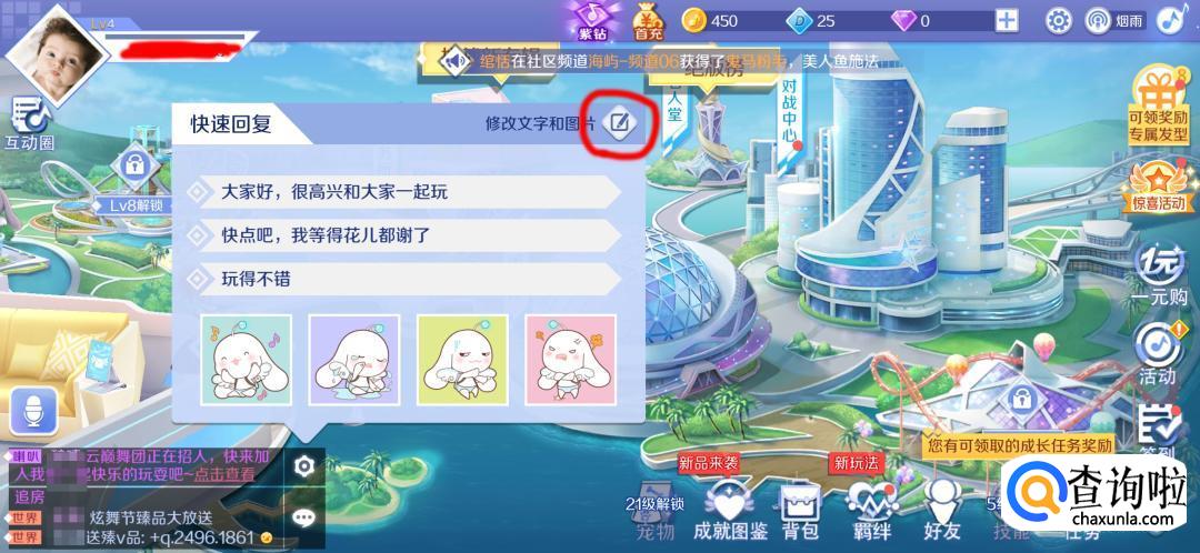 选择一个颜色代码,在编辑输入里输入“[#FF2D2D]我来了”,然后发送。