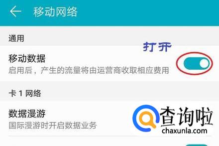 点击之后在新页面中点击“移动网络”,然后将其右侧的开关打开既可以上网了;