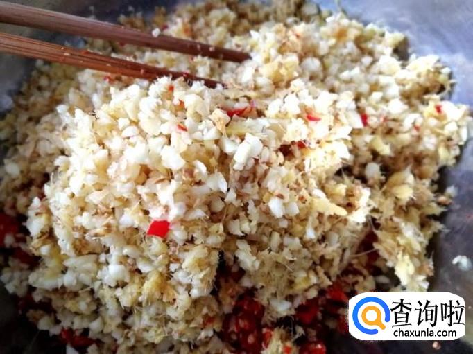 大蒜加少许姜剁碎。