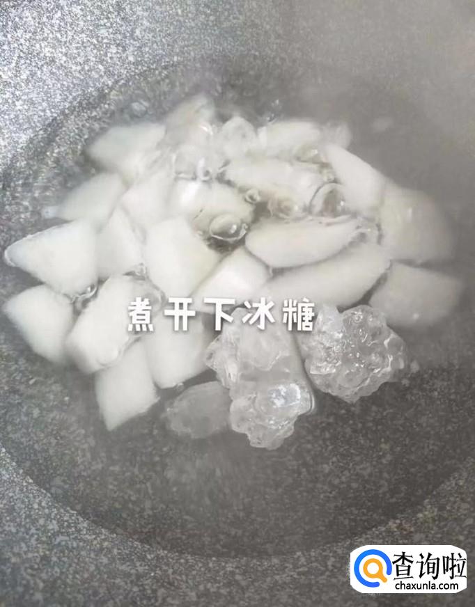 等到锅中水开,把冰糖丢进去煮15分钟,如下图所示。