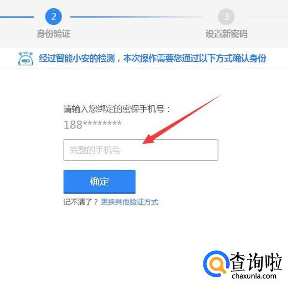然后输入你的密保手机号码,然后点击确定