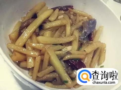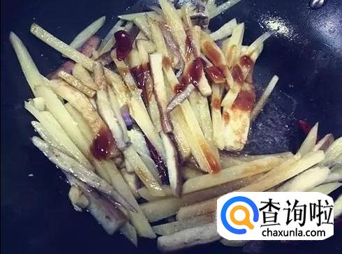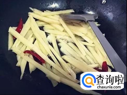 加入土豆条、干辣椒进行翻炒。