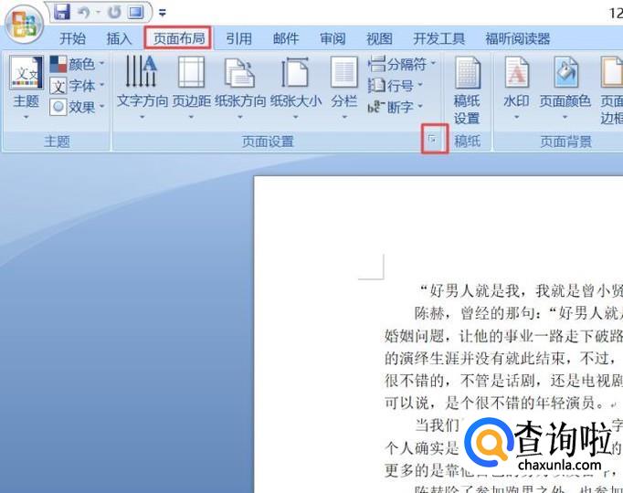 首先,我们打开我们电脑上面的word文档,然后我们点击页面布局,之后我们点击图示中的那个按钮;