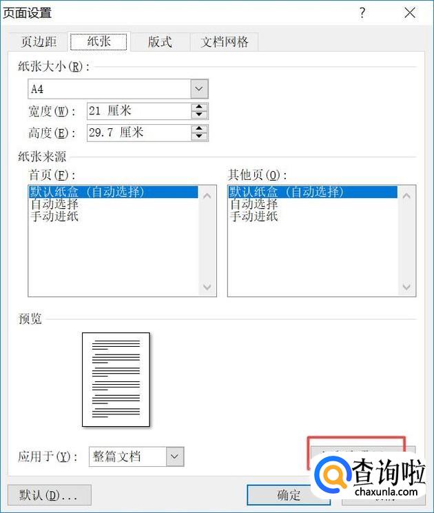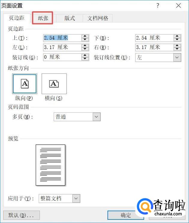 弹出的界面,我们点击纸张;