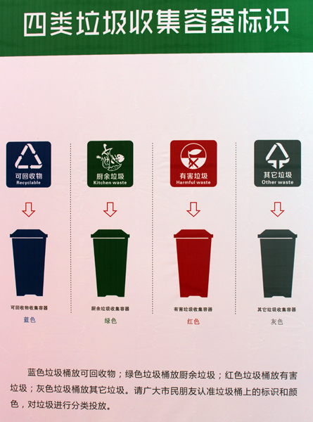 生活垃圾一般可分为四大类:可回收垃圾、厨余垃圾、有害垃圾及其他垃圾。