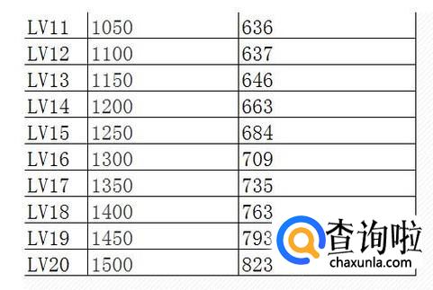 十到二十级的经验如图所示,这时候升级的速度已经慢下来,玩家需要一定的时间来进行升级。