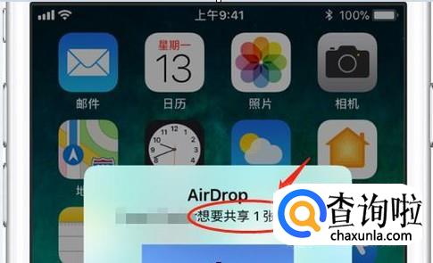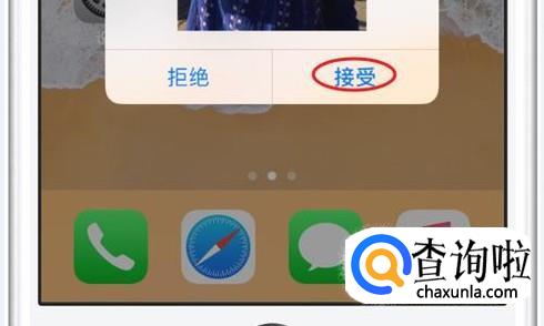 点击分享以后屏幕下方会弹出一个窗口,窗口的最上方就是隔空投送选项,如果附近有其他苹果用户也做了以上设置,那么这里会有对方的头像显示,点击对方头像即可将文件发送给他了,对方只需点击“接受”即可,如图三...