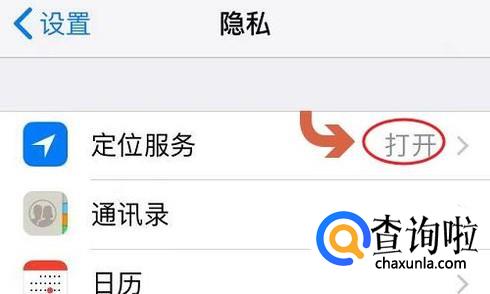 然后返回到设置页面,依次点击“隐私”-“定位服务”,然后将此项服务开启,只有这样才能搜索到附近的苹果手机用户哦;