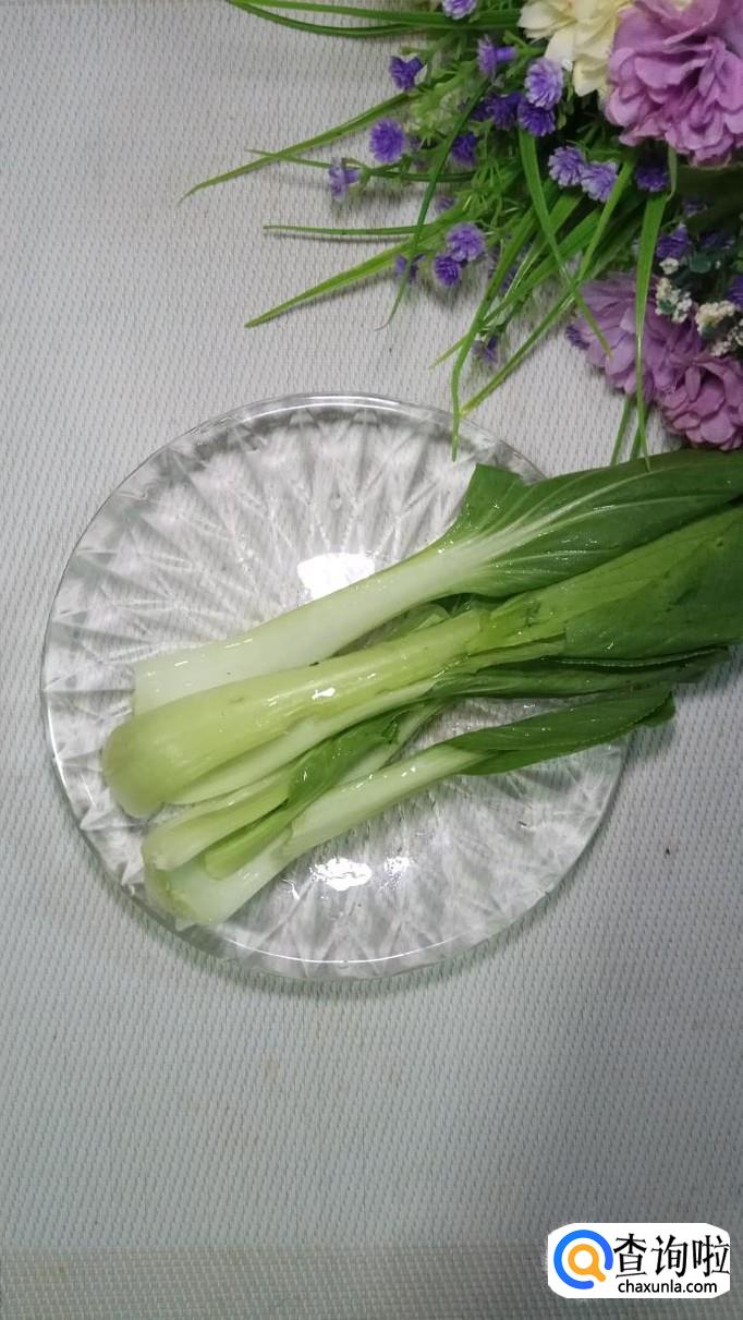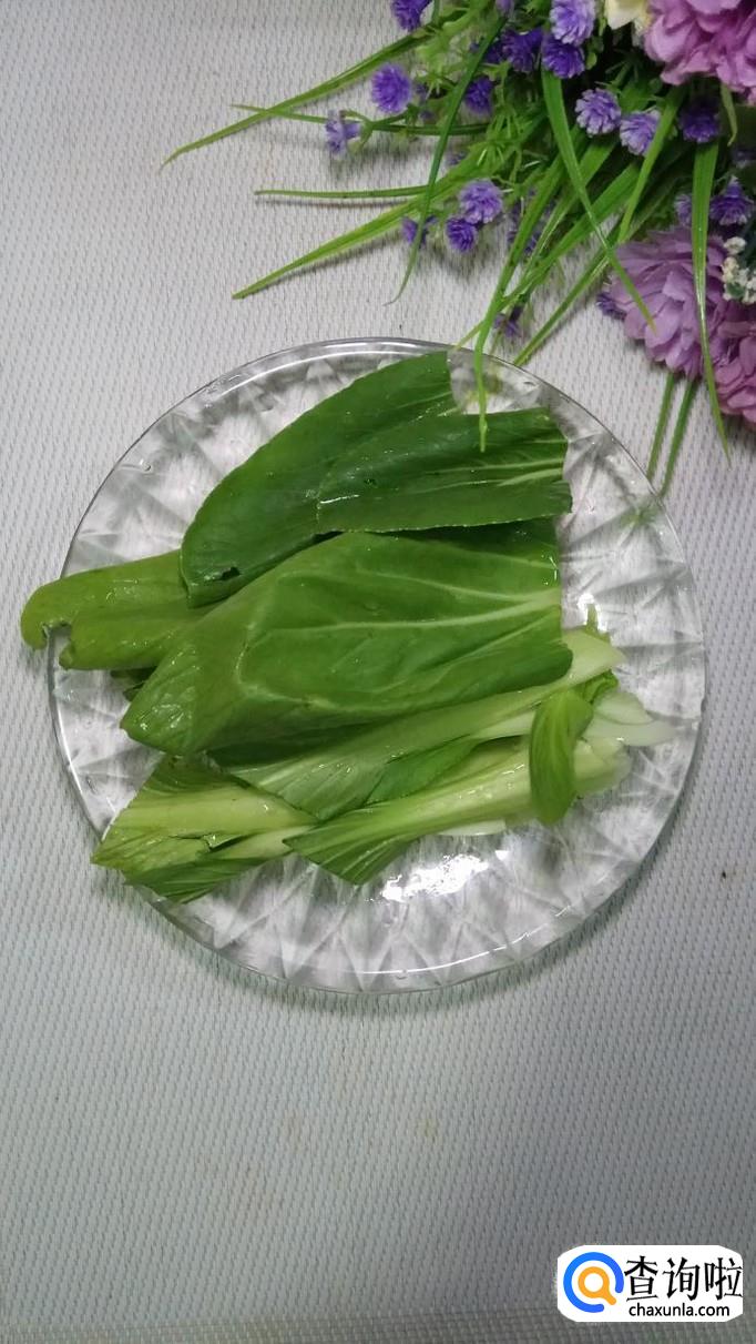 准备适量青菜,洗净后切成大段,放入盘中备用。