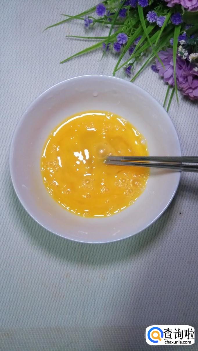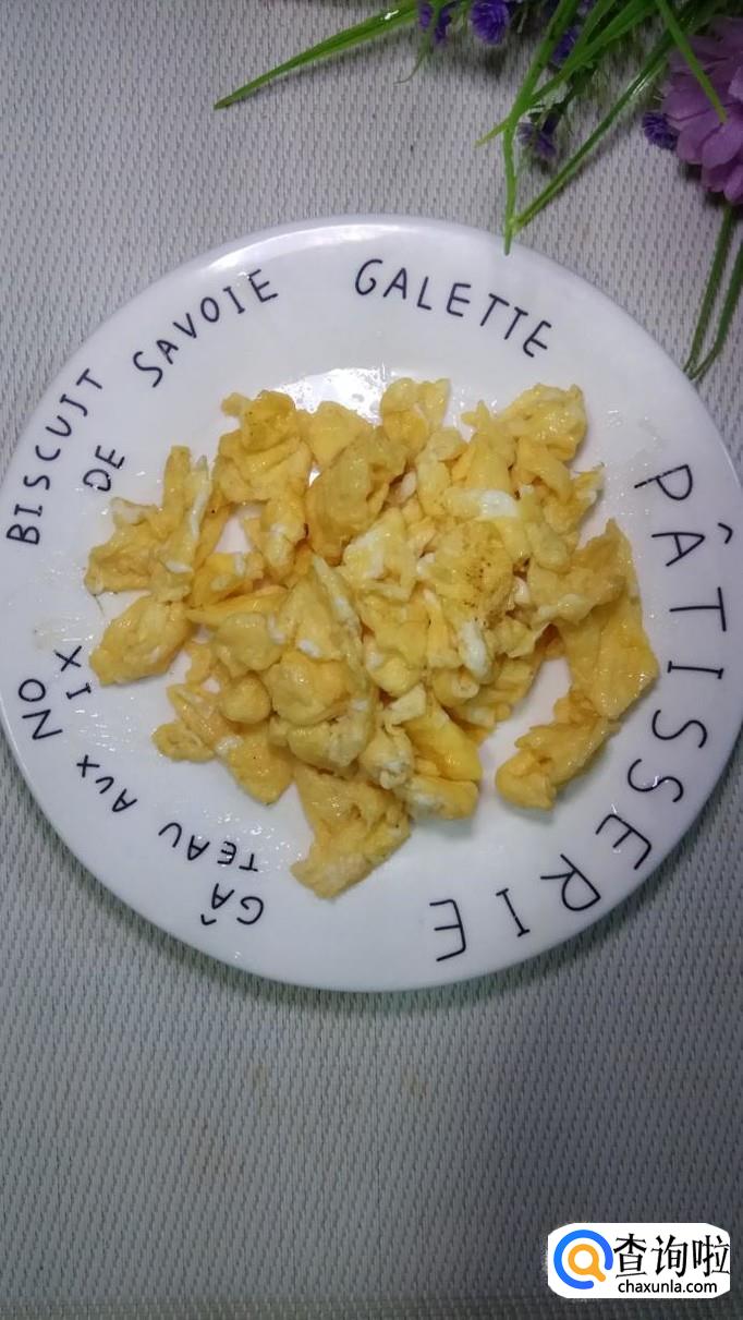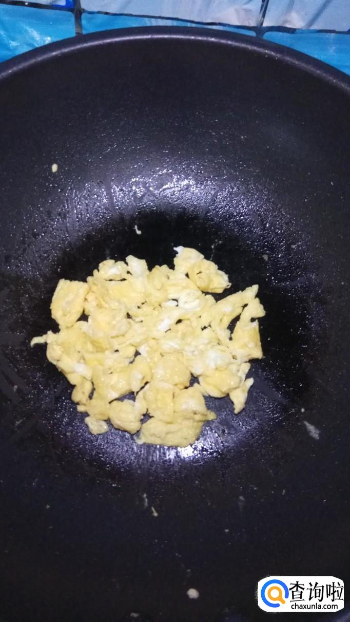 锅中放入适量油,油热后将鸡蛋液倒入锅中,炒至凝固,出锅装盘备用。