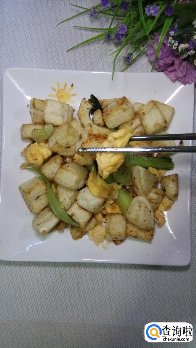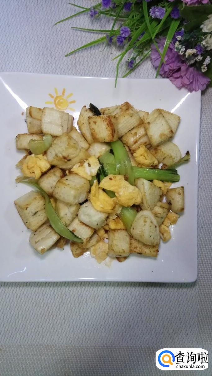 出锅装盘,鸡蛋青菜炒馒头就做好了,外焦里嫩,口感特别好,营养又美味,大人小孩都非常喜欢。