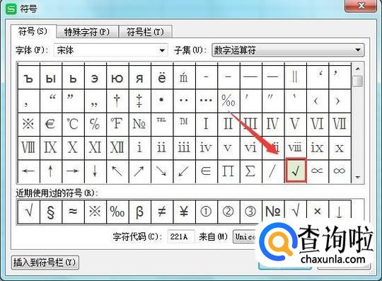 点击数学与运算符号选项之后在其内我们会找到打勾这个选项,如图所示: