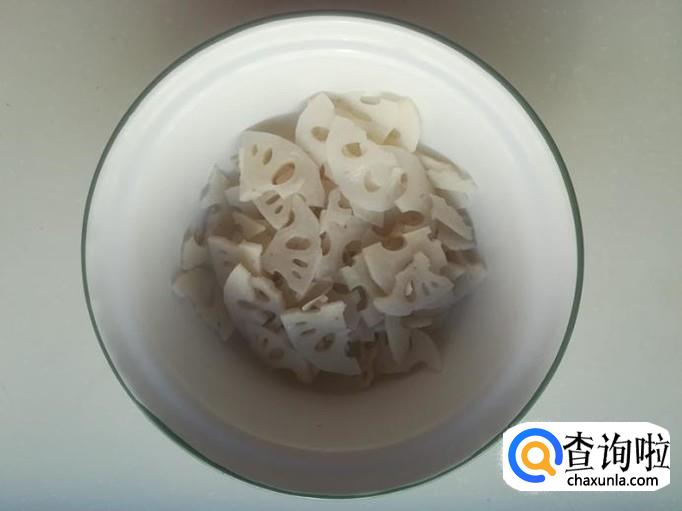 再把莲菜片放开水锅里焯一下水,焯的时间不能太长,否则就不脆了。