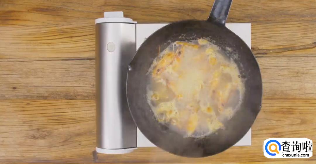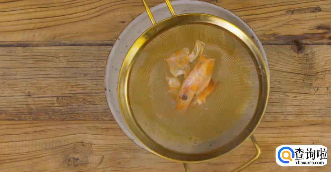 加适量的水煮开,煮沸后滤出虾头和虾壳。