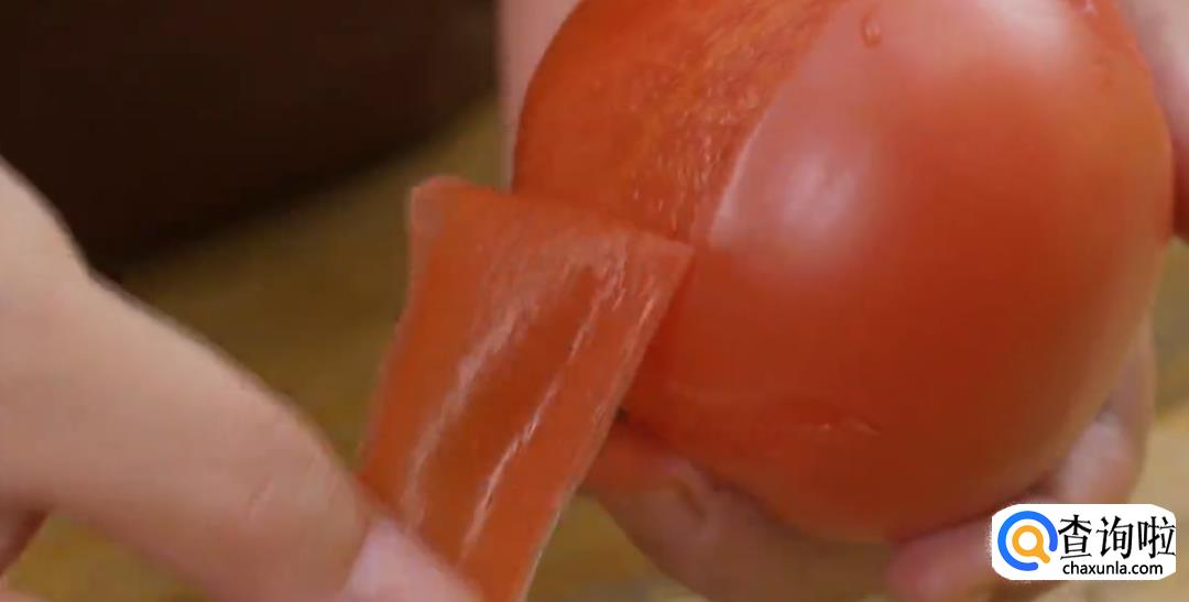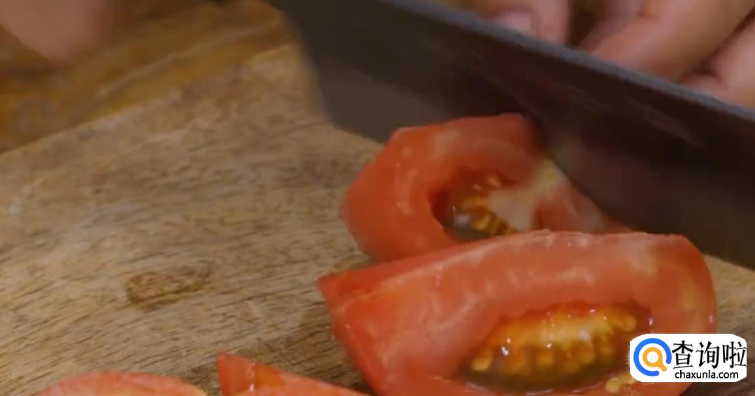 将洗净的草菇切半,南姜切片。将烫过的西红柿去皮,切块。