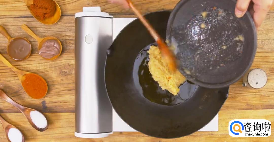 热锅起油,用大火将刚才打好的底料煸香。
