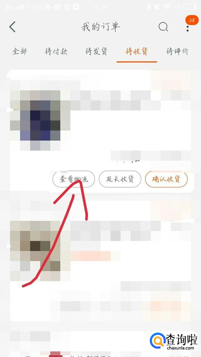 点击“待收货”选项,如图1箭头所示。会出现一个新的界面,点击你要查看物流的商品。