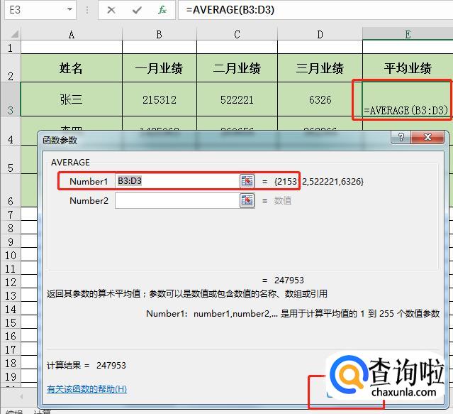 选定后按回车键,点击【确定】按钮,就可以求出张三一月、二月、三月的平均业绩。