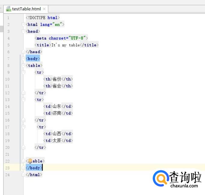 table标签定义 HTML 表格,table 由一个或多个 tr、th 或 td 元素组成,tr 元素定义表格的行,th定义表头,td定义表格单元,即展示的内容,下面介绍下如何用HTML做一个表格
