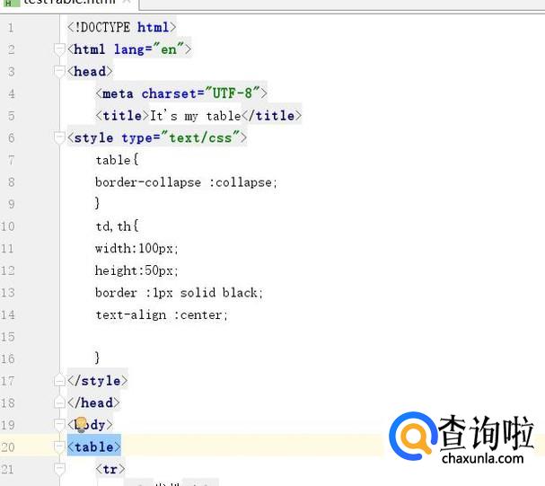 下面我们为表格增加样式,增加边框等元素,代码如下