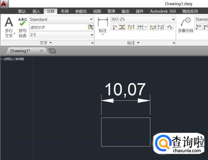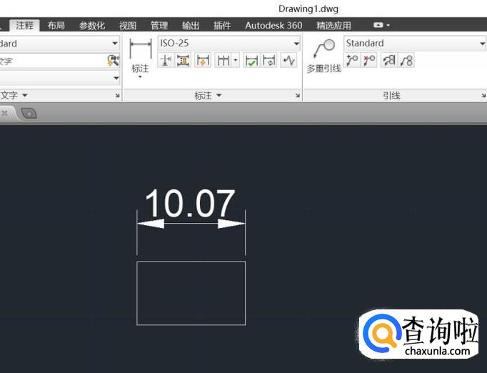 首先,我们点击打开我们电脑上面的CAD,然后我们在里面画个矩形,之后将长进行标注;