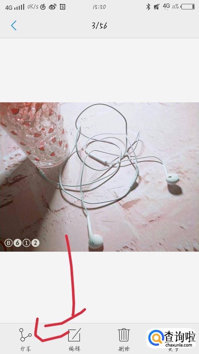 先找到配对的设备,再去相册里找到你想要分享的照片,如图1所示。点击左下角的分享,如图2箭头所示