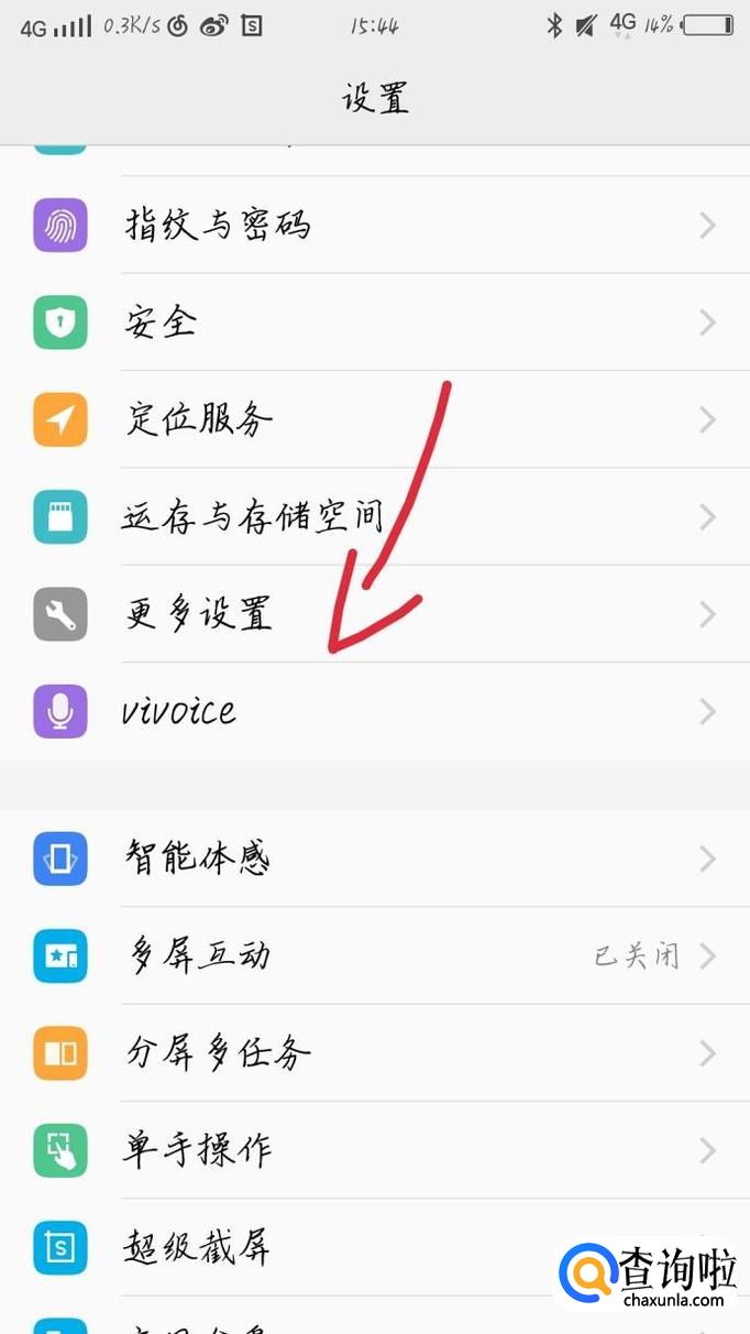 点击更多设置这个选项,如图1箭头所示。会进入一个新的界面,如图2所示。打开蓝牙,如图3所示